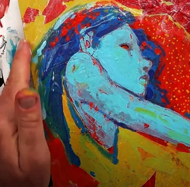 Demo (8:56) featuring acrylic painting on a plastic sheet, then transferring the painting to a wood panel.