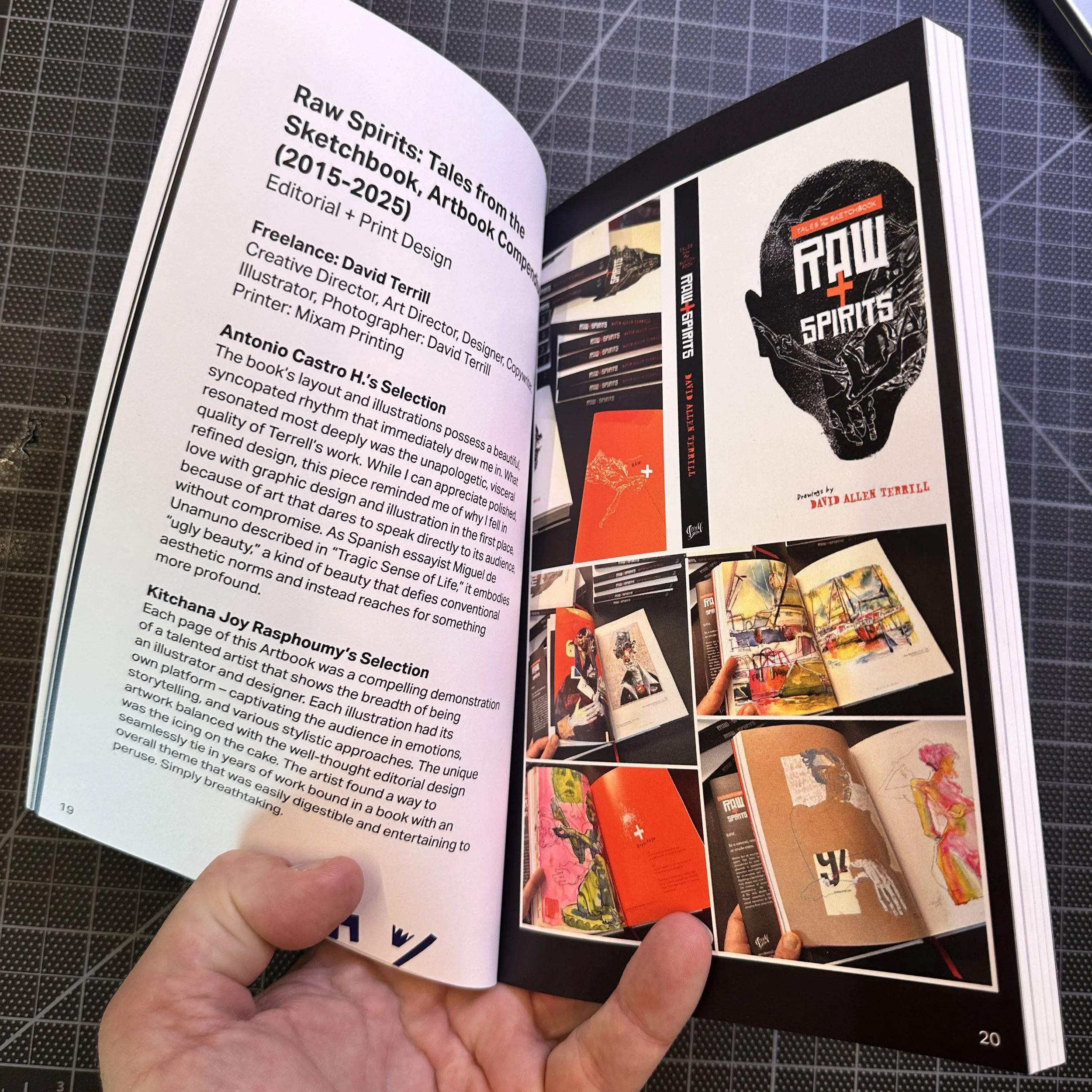 While attending the A20 ceremony on September 25th, it was revealed that Raw Spirits was selected for two Juror’s Choice: Professional Awards (as well as Best in Class recognition in the Illustration & Editorial + Print Design categories). Wow. This additional recognition comes as a great honor. It is rewarding to have my work resonate and connect with its audience. The juror’s statements in the A20 catalog describing Raw Spirits affirmed my intensions in creating this book.